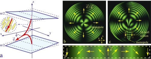 Après une introduction large aux cristaux liquides, nous montrerons comment générer de façon reproductible la texture pseudo-planaire [1] (voir fig. a) et nous verrons que dans certaines conditions sa durée de vie peut être pratiquement infinie.