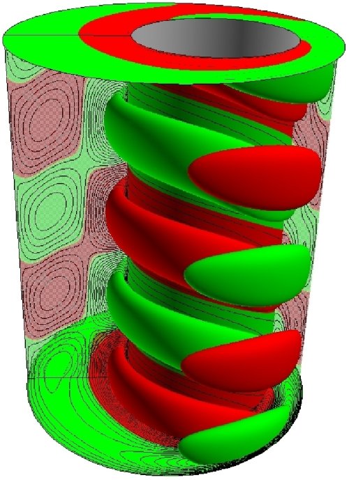 En revanche, l'analyse spatio-temporelle a mis en évidence la relation complexe entre eccentricité et instabilités absolues : selon les régimes l'eccentricité peut promouvoir ou réduire le taux de croissance absolue.